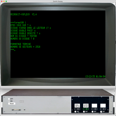 - Emulation du controleur de disquette WD1791 avec prise en compte des commandes de lecture, écriture et formatage ;