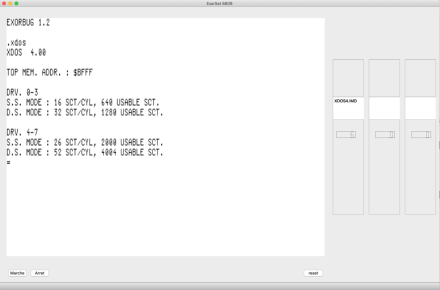 L'ExorSet 6809 est une superbe machine de développement de Motorola capable de créer des codes 6800 / 6802 / 6809. Il exploite un DOS nommé XDOS complètement dédié au développement. J'ai plusieurs ExorSet 100 et 30, mais qui ne fonctionnent pas. L'émulation me permet de vérifier le fonctionnement et de préparer des disquettes à partir d'images.