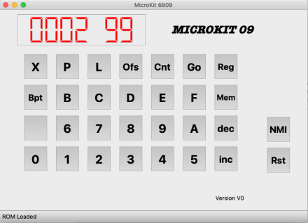 Le Microkit 6809 est un petit système d'initiation créé par la revue LED en 1983 (de mémoire, je faisais mes études à Bordeaux) J'ai vu le plan dans la revue et j'ai fait les circuits dans le laboratoire d'électronique. Malheureusement, je n'avais pas l'EPROM. La carte est donc restée dans un placard jusqu'en 2012, quand j'ai reçu Le listing officiel. J'ai recopié le code et terminé mon Microkit. Par plaisir, j'ai fait un émulateur de ce petit monoboard qui permet de mieux comprendre comment on apprenait à faire de l'informatique dans les années 1980 ! il a les caractéristiques suivantes :