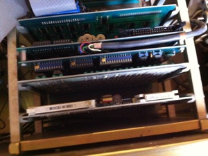 A l'ouverture du boitier (qui pèse une tonne) j'ai pu voir que les cartes étaient en très bon état et que l'alimentation était bien conservée. J'ai mis l'ensemble au sec en attendant d'avoir le temps de m'en occuper.