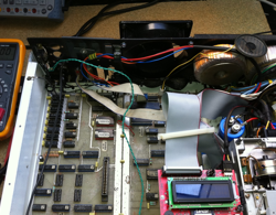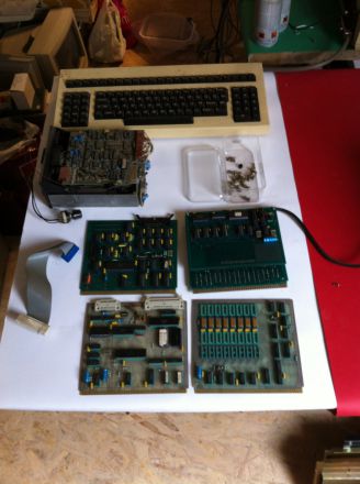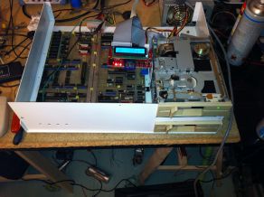 La simple manipulation de la carte mère a créé des faux contacts car les supports des circuits sont des «simple lyre», ceux de moindre qualité. J’ai donc démonté soigneusement tous les composants, nettoyé au F2 (spay anti-corrosion) et tout remonté. J’ai dû utiliser un analyseur logique pour comprendre ce qui ne marchait pas. En fait, certaines RAM (1 x 64Ko) ne fonctionnaient pas et je les ai finalement toutes remplacées.