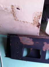 La remise en état du boîtier a été plus difficile. La rouille avait recouvert une bonne partie du fond et des faces avant et arrière. J'ai cherché une peinture qui procurait un rendu similaire à la partie encore intacte. J'ai finalement acheté (sur le conseil d'un membre du forum system.cfg) une peinture Warnex Structure de chez Thomann. Cette peinture normalement utilisée pour les enceintes audio. Avec une sous-couche anti-rouille, le résultat a été excellent !
