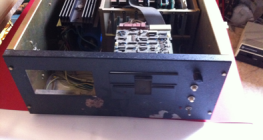 Au démontage, le boîtier m'a impressionné. Constitué de tôles en acier cadmié d'environ 1mm d'épaisseur , assemblé par vis, avec des faces avant et arrière peintes en noir et un couvercle peint de couleur crème, ce boitier est particulièrement robuste et lourd. Sa taille permet un accès facile aux cartes, à l'alimentation et aux 2 lecteurs de disquettes pleines hauteur.